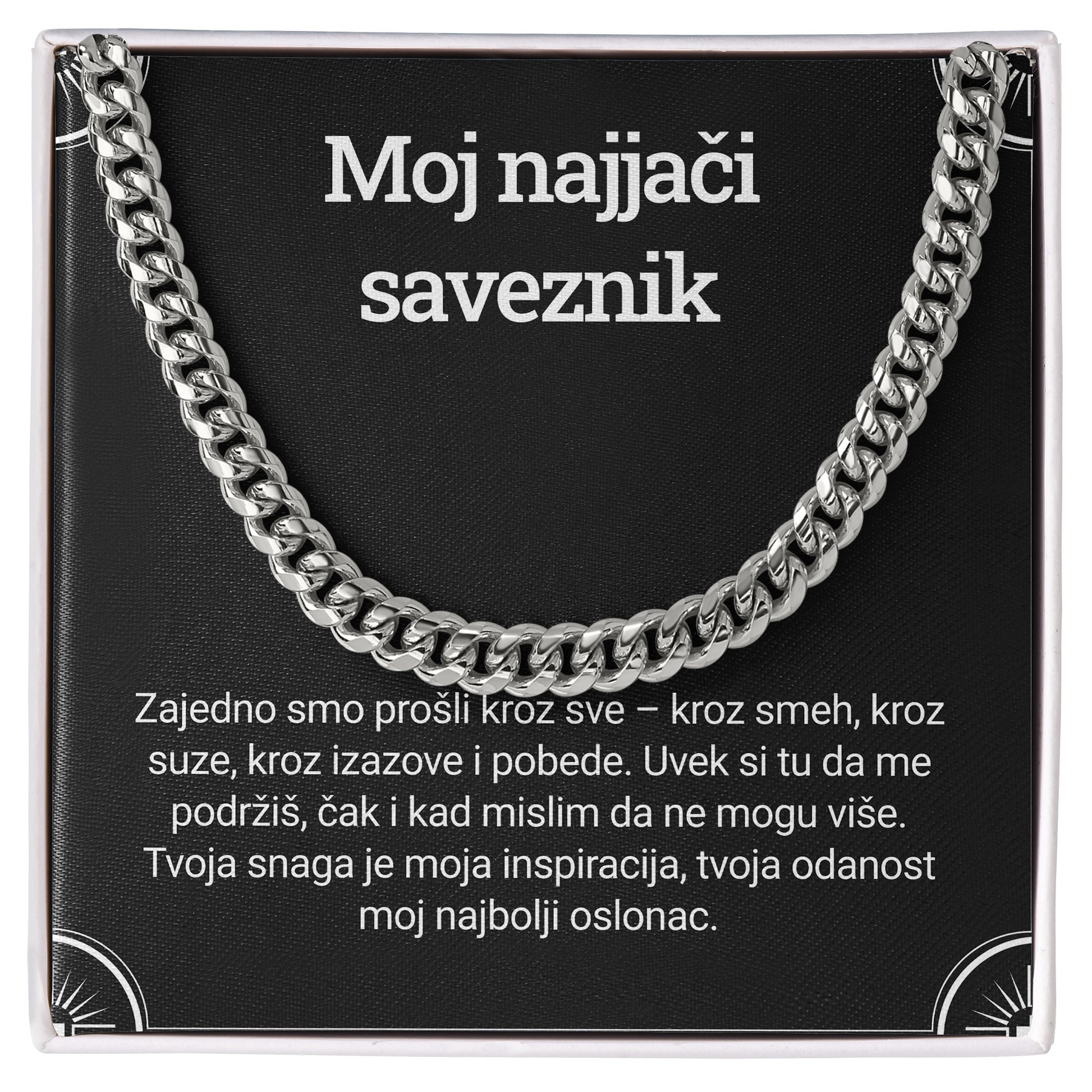 Cuban Chain nije samo lančić – on je snažna poruka. Kada žena pokloni ovakav komad nakita muškarcu, to je znak poverenja, divljenja i poštovanja. Svaki karika govori: "Verujem ti. Tu sam." Težina i čvrstina lančića simbolizuju snagu onoga ko ga nosi, ali i dubinu osećanja onoga ko ga poklanja. To je poklon koji ne govori mnogo – ali oseća se svaki dan, uz kožu, blizu srca.
