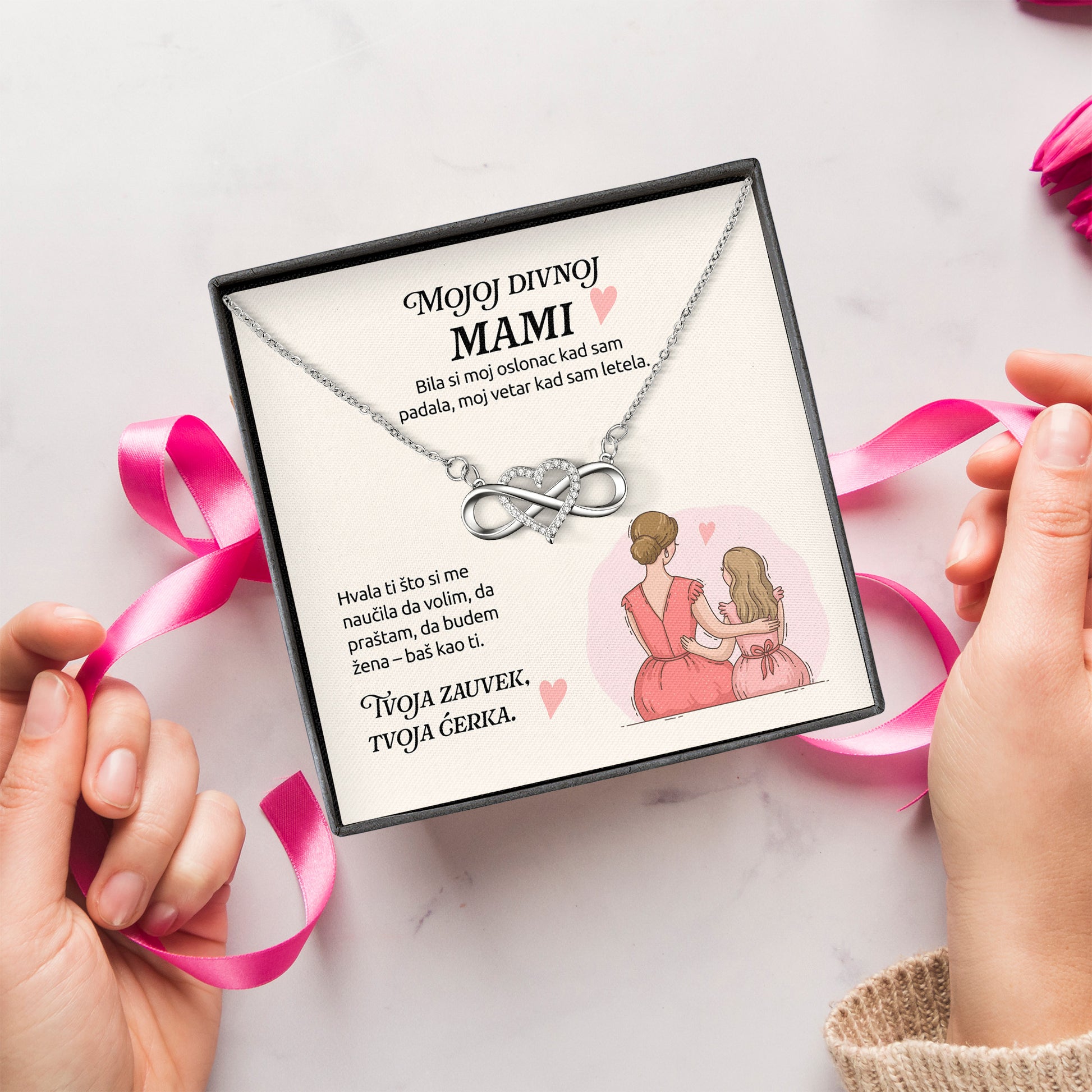 Mojoj divnoj mami – Posveta sa lančićem od ćerke za majku