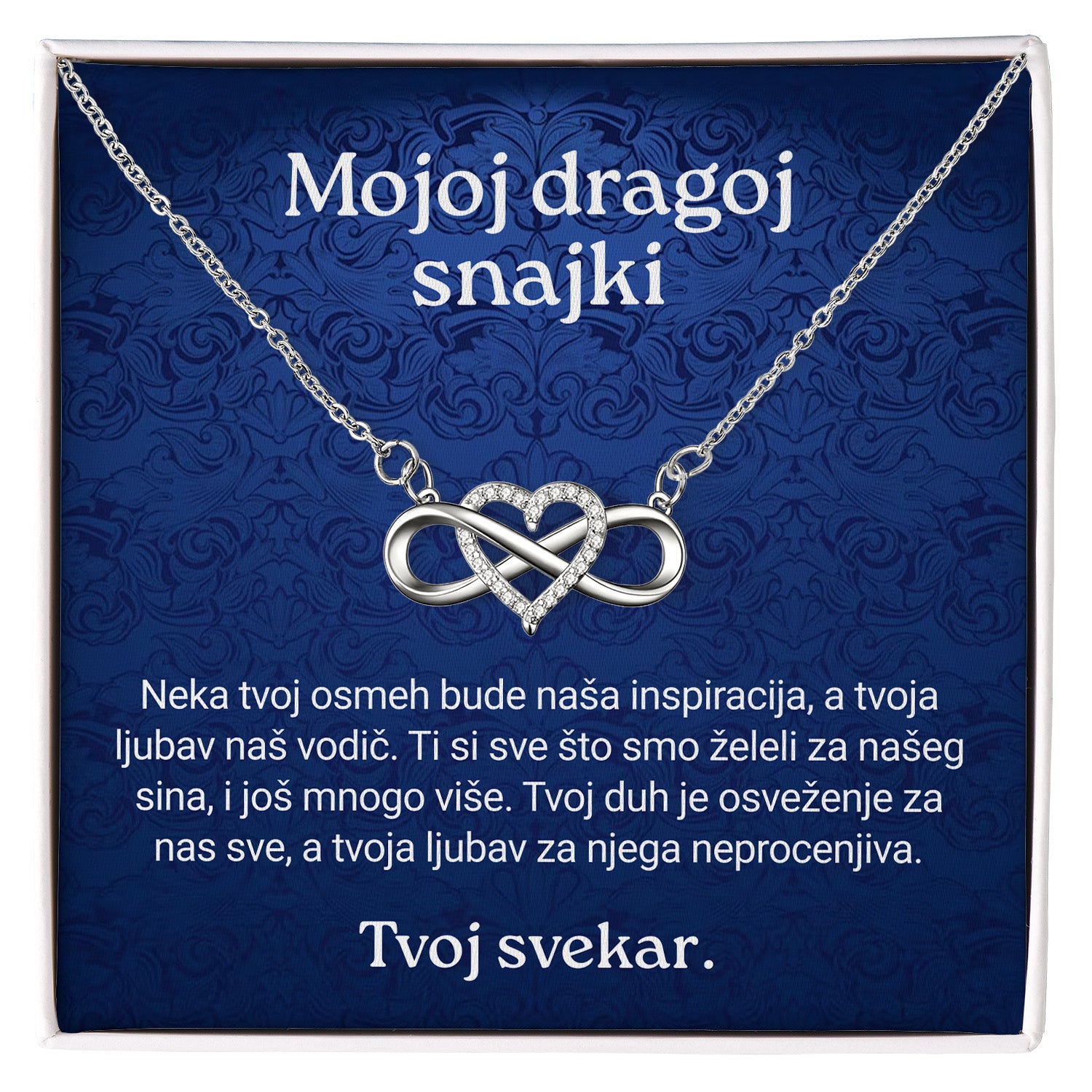 Oduševite svoju snajku jedinstvenim poklonom koji nosi trajnu poruku ljubavi – ogrlica od visokokvalitetnog nerđajućeg čelika.