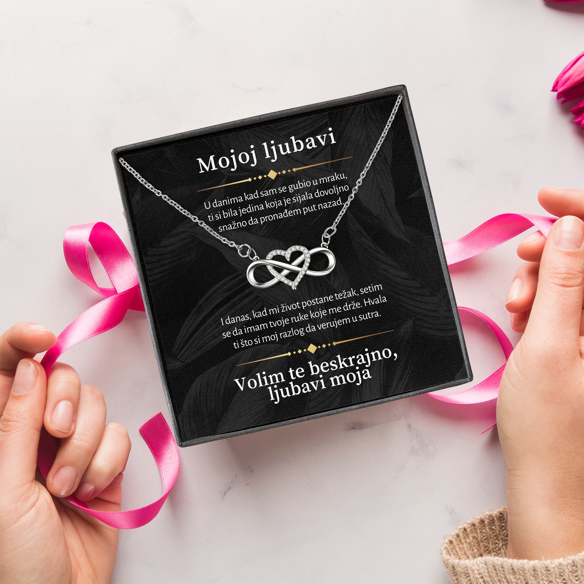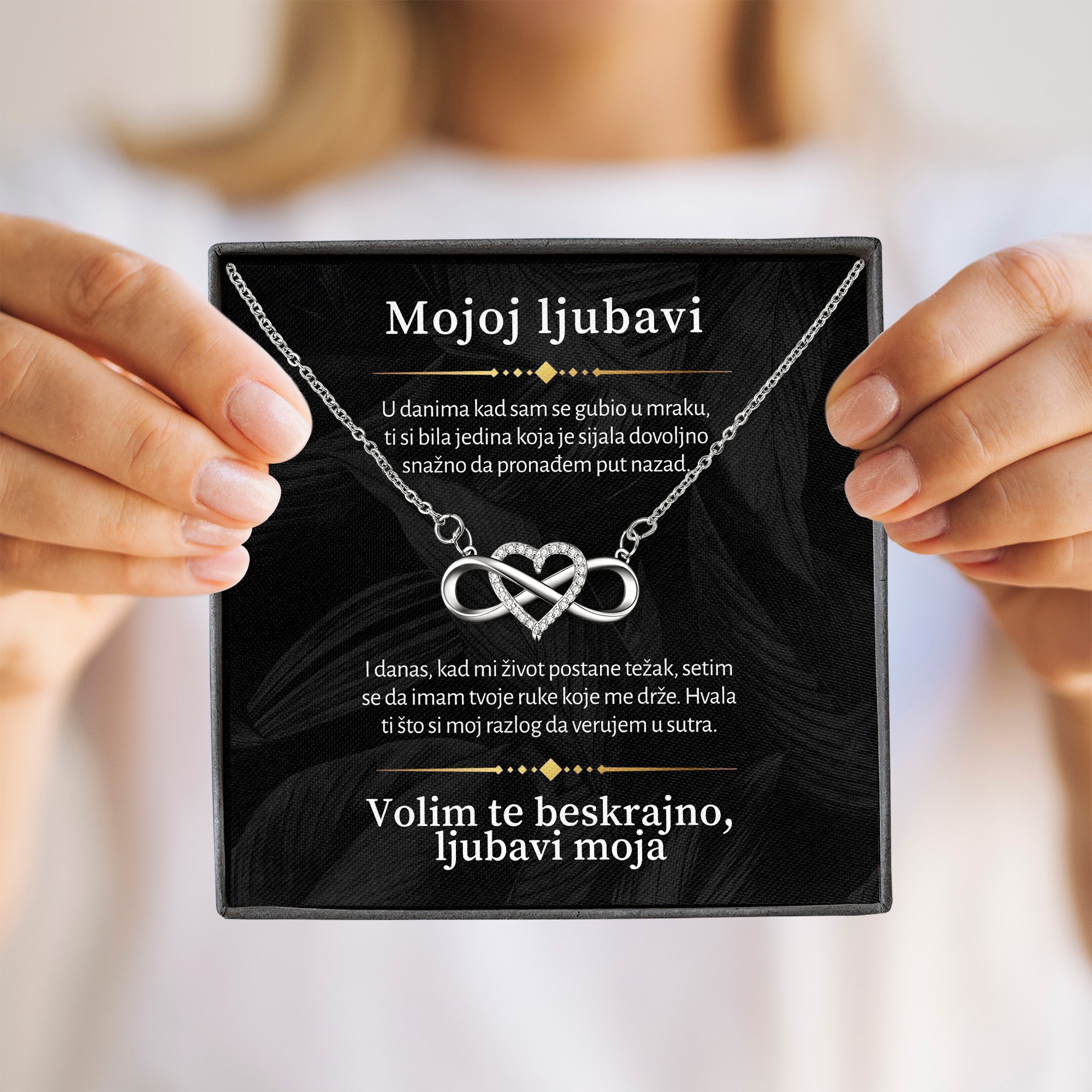 Uz nju dolazi i lančić – nežan simbol beskonačne ljubavi i povezanosti. Ne kao ukras, već kao podsetnik.