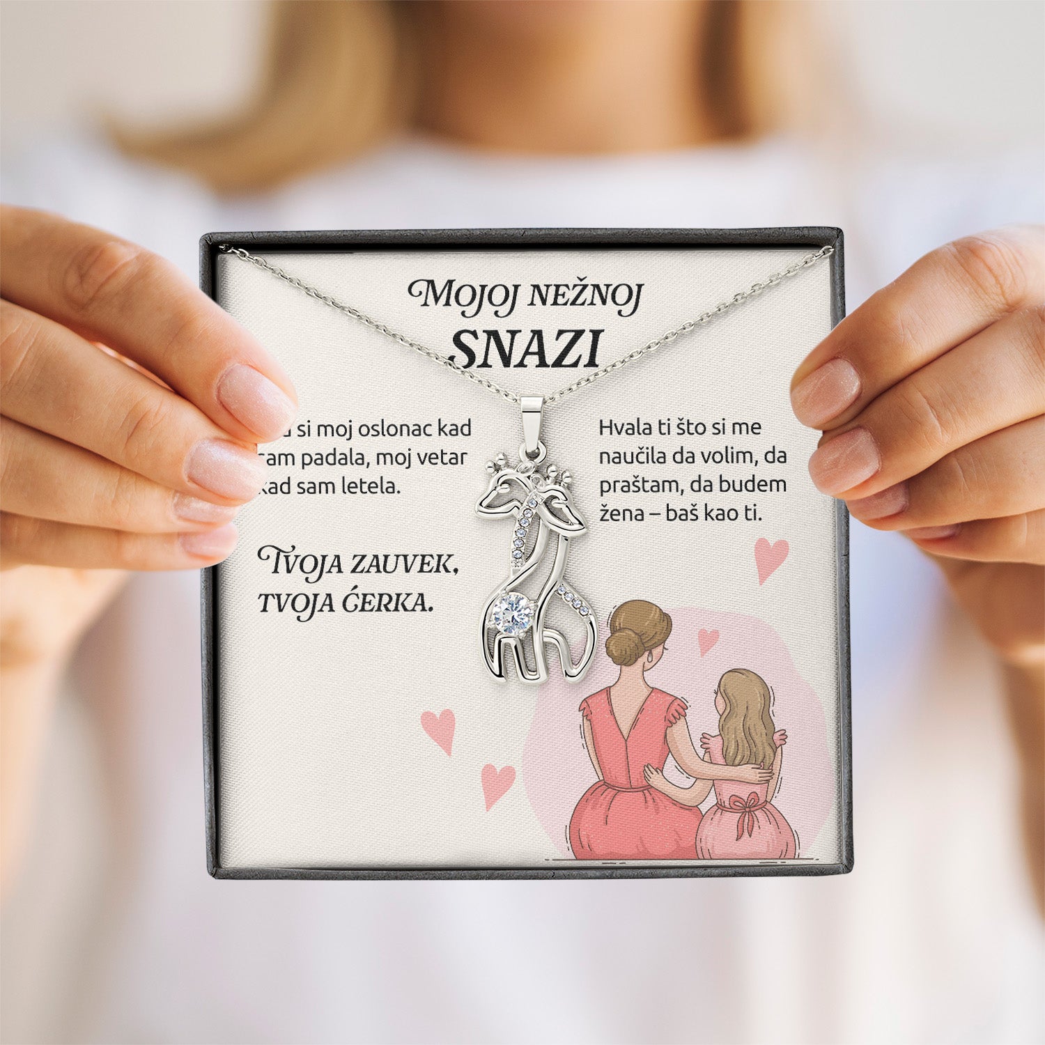 Mojoj nežnoj snazi – Posveta sa lančićem za majku od ćerke (Žirafa)