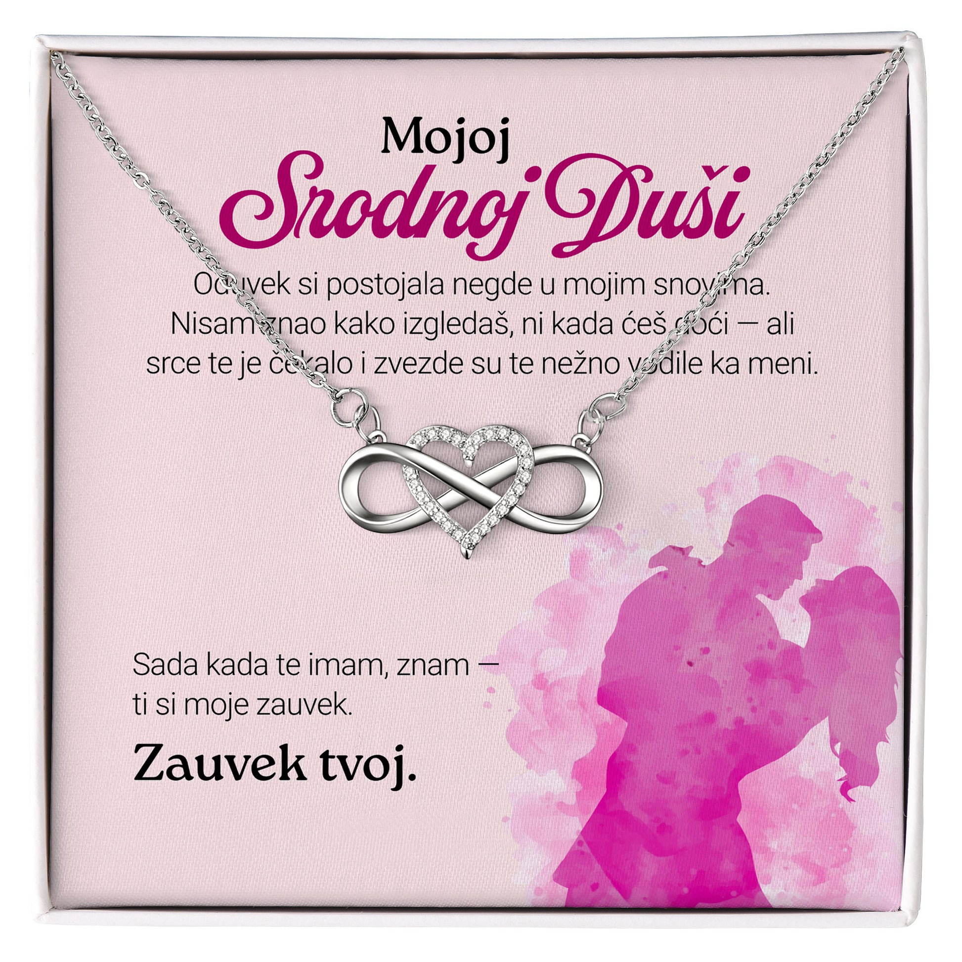 Predivna ogrlica "Infiniti srce" kombinuje simbol beskonačnosti sa oblikom srca, predstavljajući neprekidnu ljubav i povezanost. Ukrašena cirkonskim kristalima i izrađena od visokokvalitetnog nerđajućeg čelika, ovaj komad nakita je savršen za svaku priliku. Ogrlica dolazi u luksuznoj kutiji, uz posebnu posvetu koja dodaje još veću emotivnu vrednost ovom poklonu.