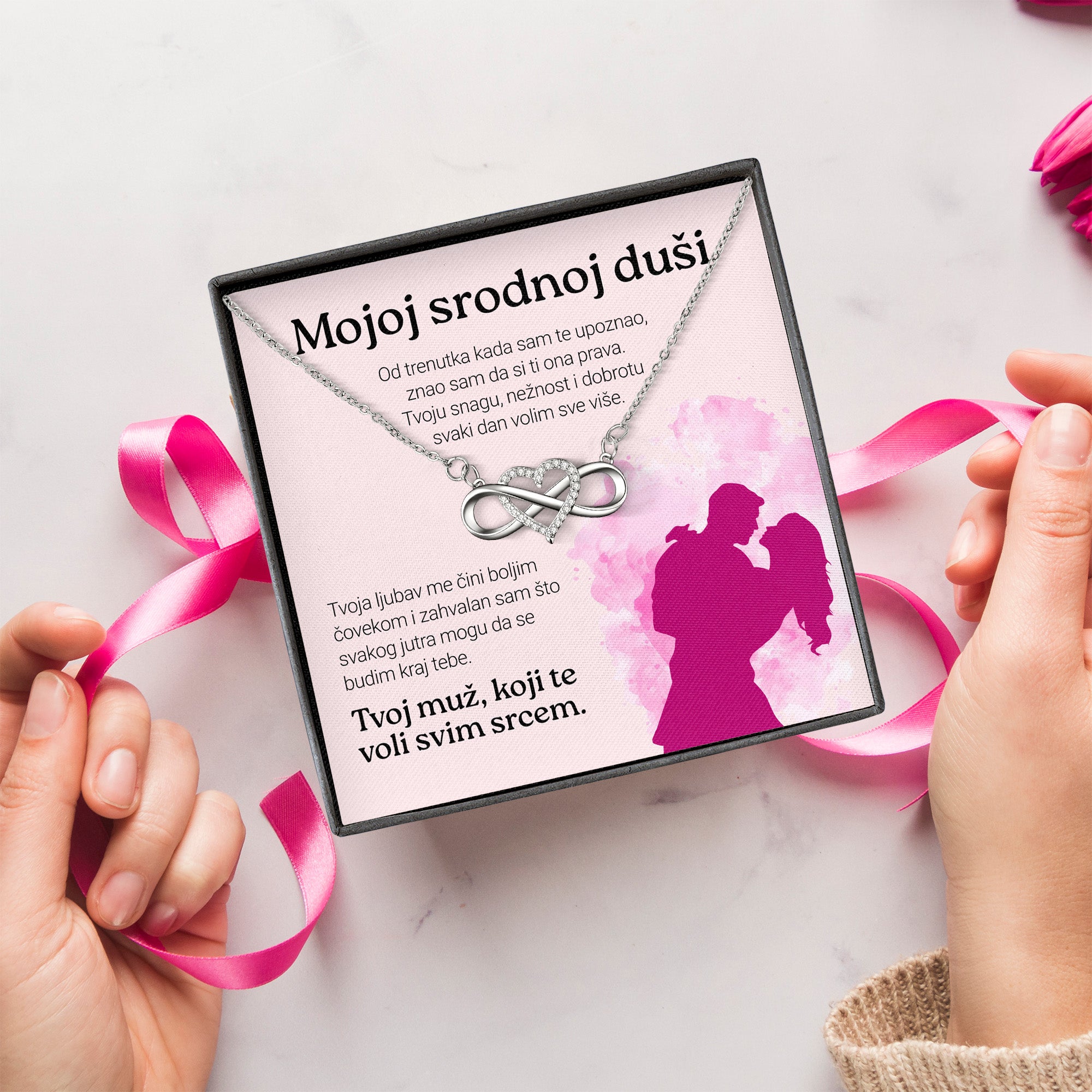 Uz nju dolazi i lančić – nežan simbol beskonačne ljubavi i povezanosti. Ne kao ukras, već kao podsetnik.