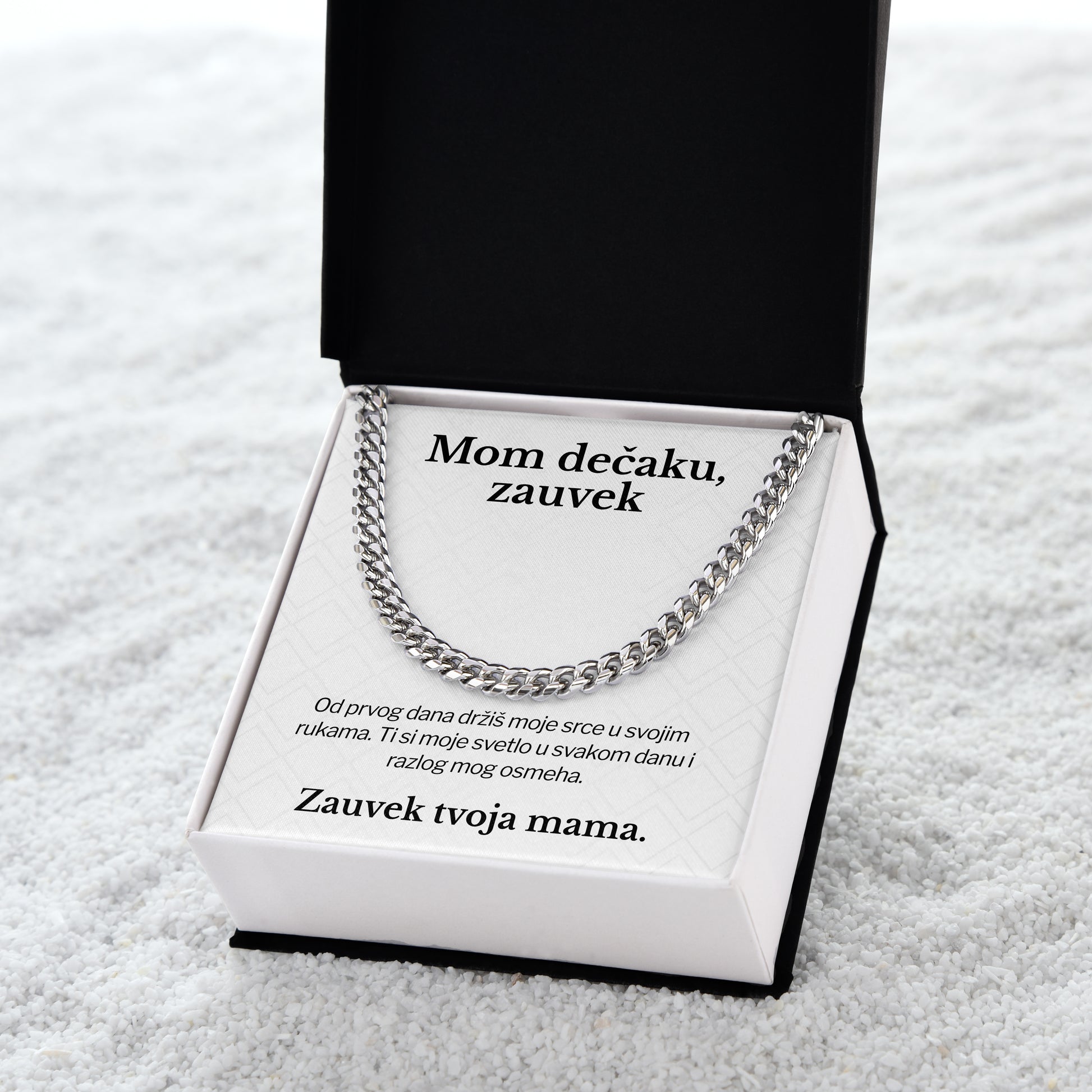 Oduševite svog sina jedinstvenim poklonom koji nosi trajnu poruku ljubavi - ogrlica od visokokvalitetnog nerđajućeg čelika.