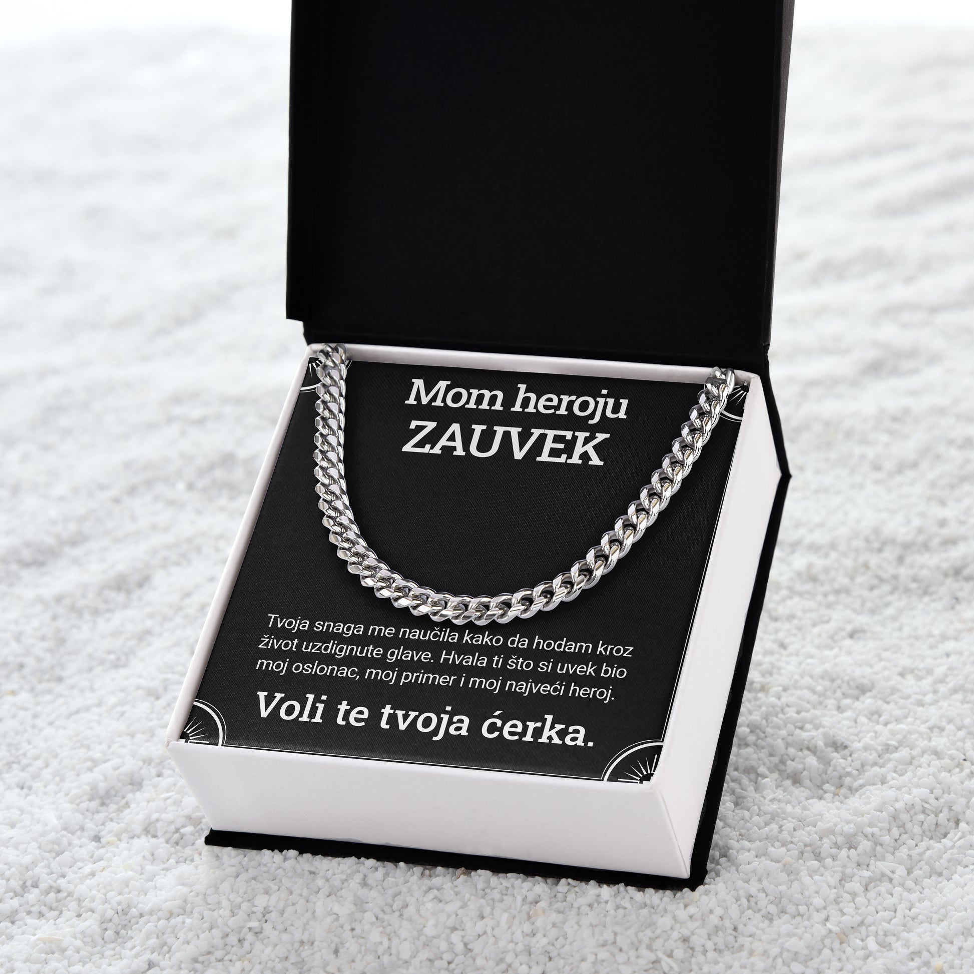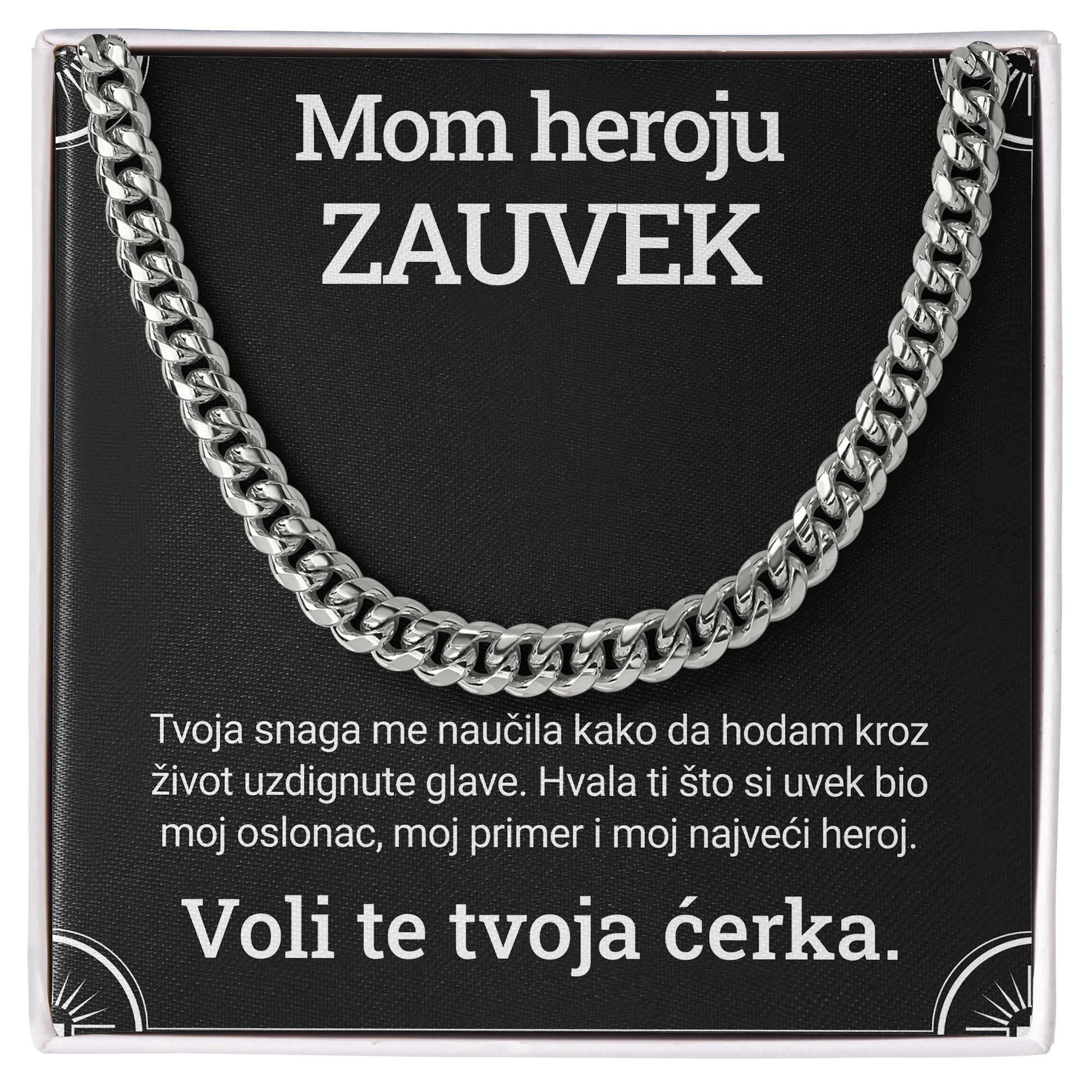 Cuban Chain nije samo lančić – on je snažna poruka. Kada žena pokloni ovakav komad nakita muškarcu, to je znak poverenja, divljenja i poštovanja. Svaki karika govori: "Verujem ti. Tu sam." Težina i čvrstina lančića simbolizuju snagu onoga ko ga nosi, ali i dubinu osećanja onoga ko ga poklanja. To je poklon koji ne govori mnogo – ali oseća se svaki dan, uz kožu, blizu srca.