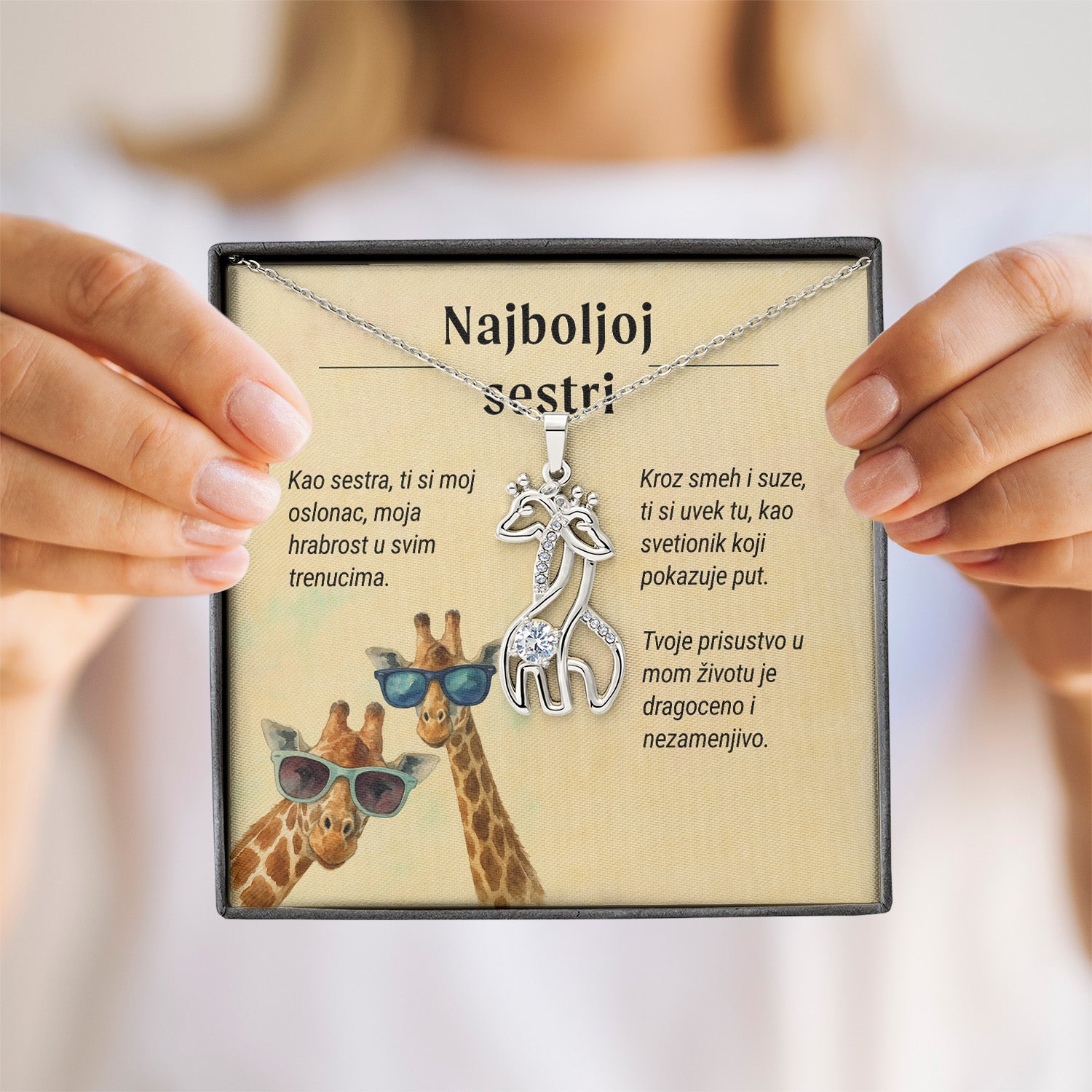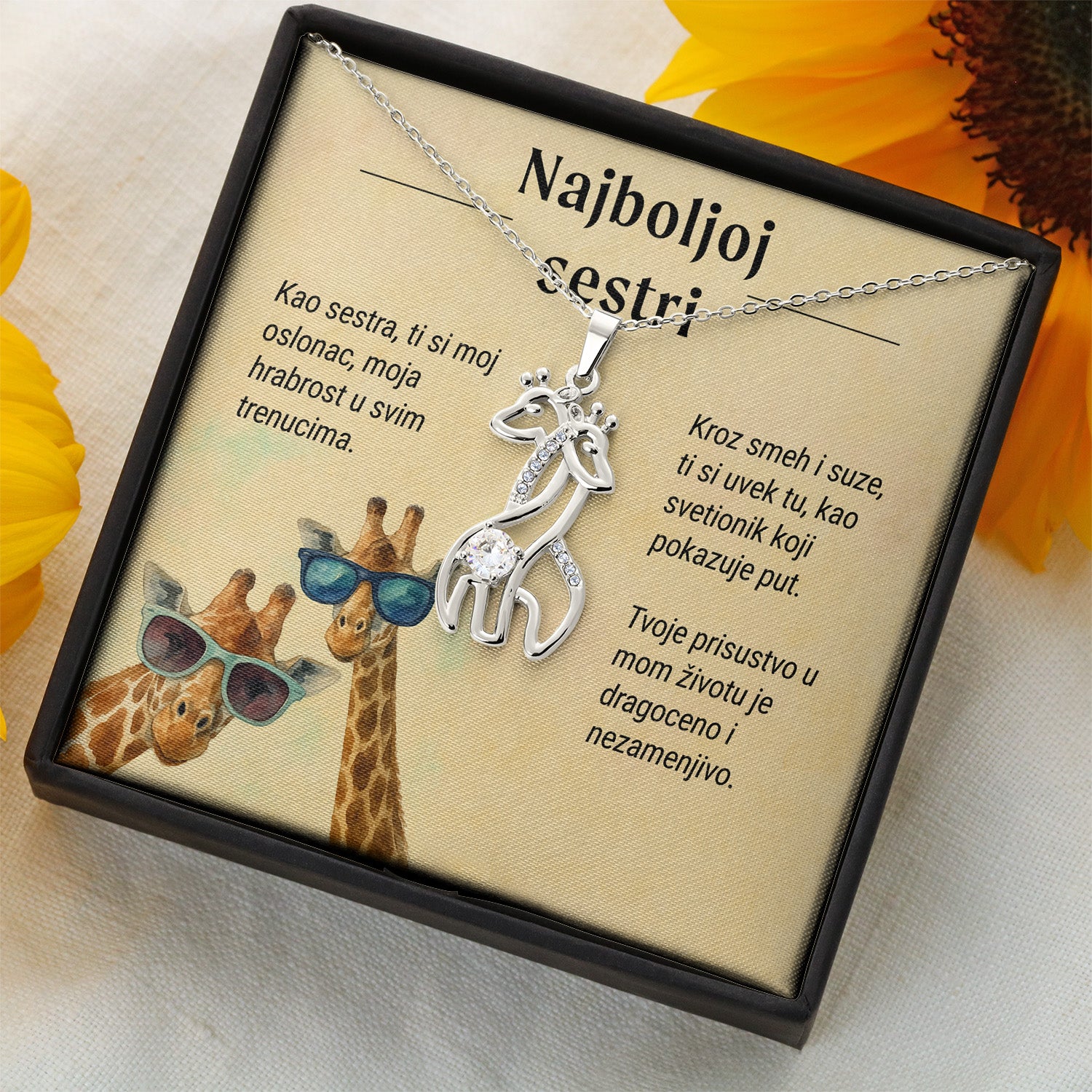 Najboljoj sestri – Posveta sa lančićem od sestre (Žirafa), svetla