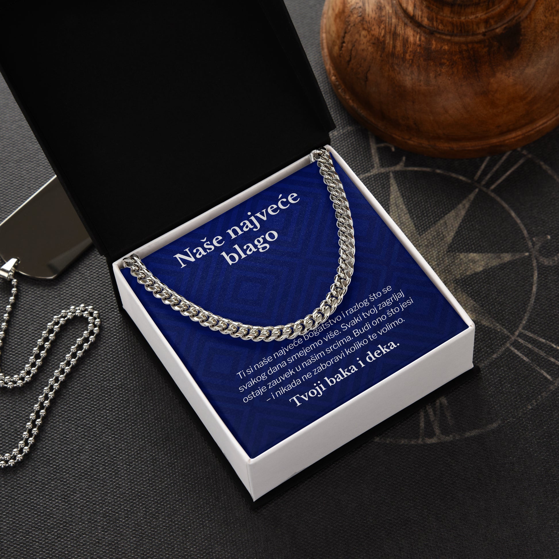 Naše najveće blago – Posveta sa lančićem za unuka od bake i deke