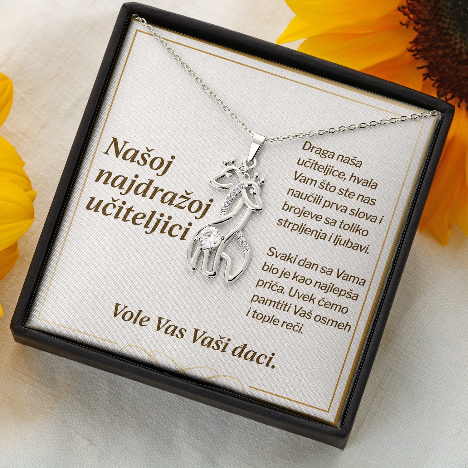 Našoj najdražoj učiteljici - Posveta sa lančićem za učiteljicu (Žirafa)
