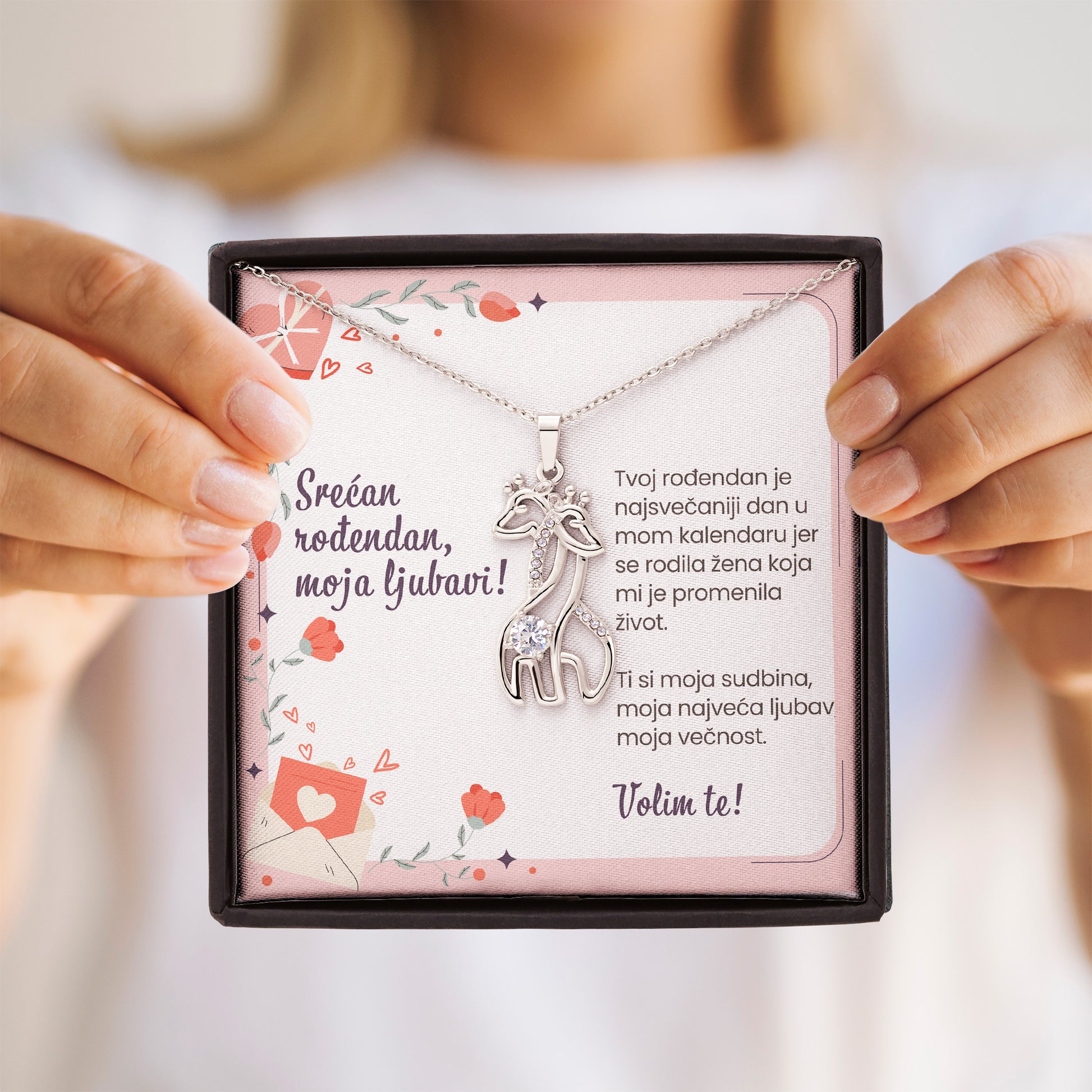 Srećan rođendan, moja ljubavi! - Posveta sa lančićem za rođendan (Žirafa)