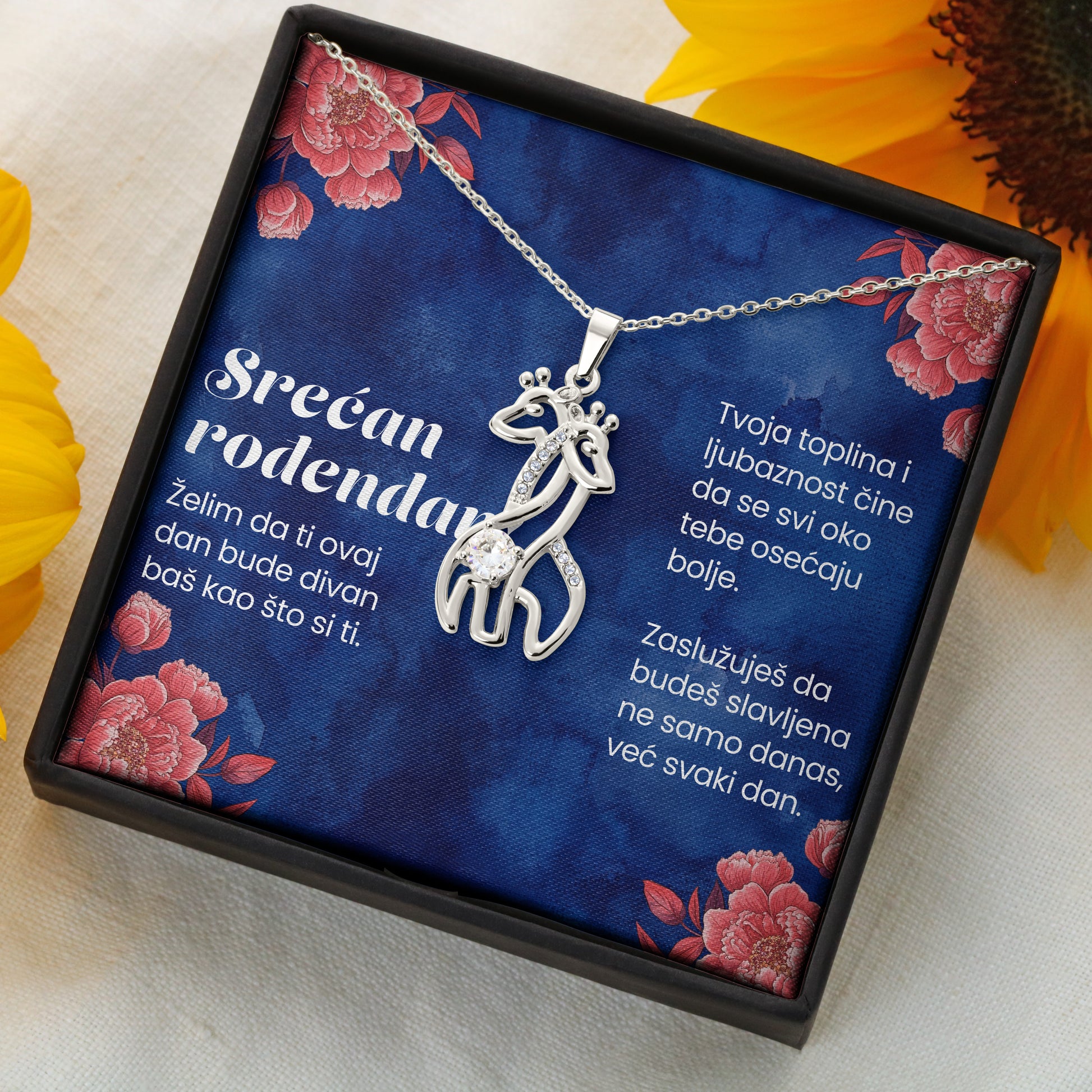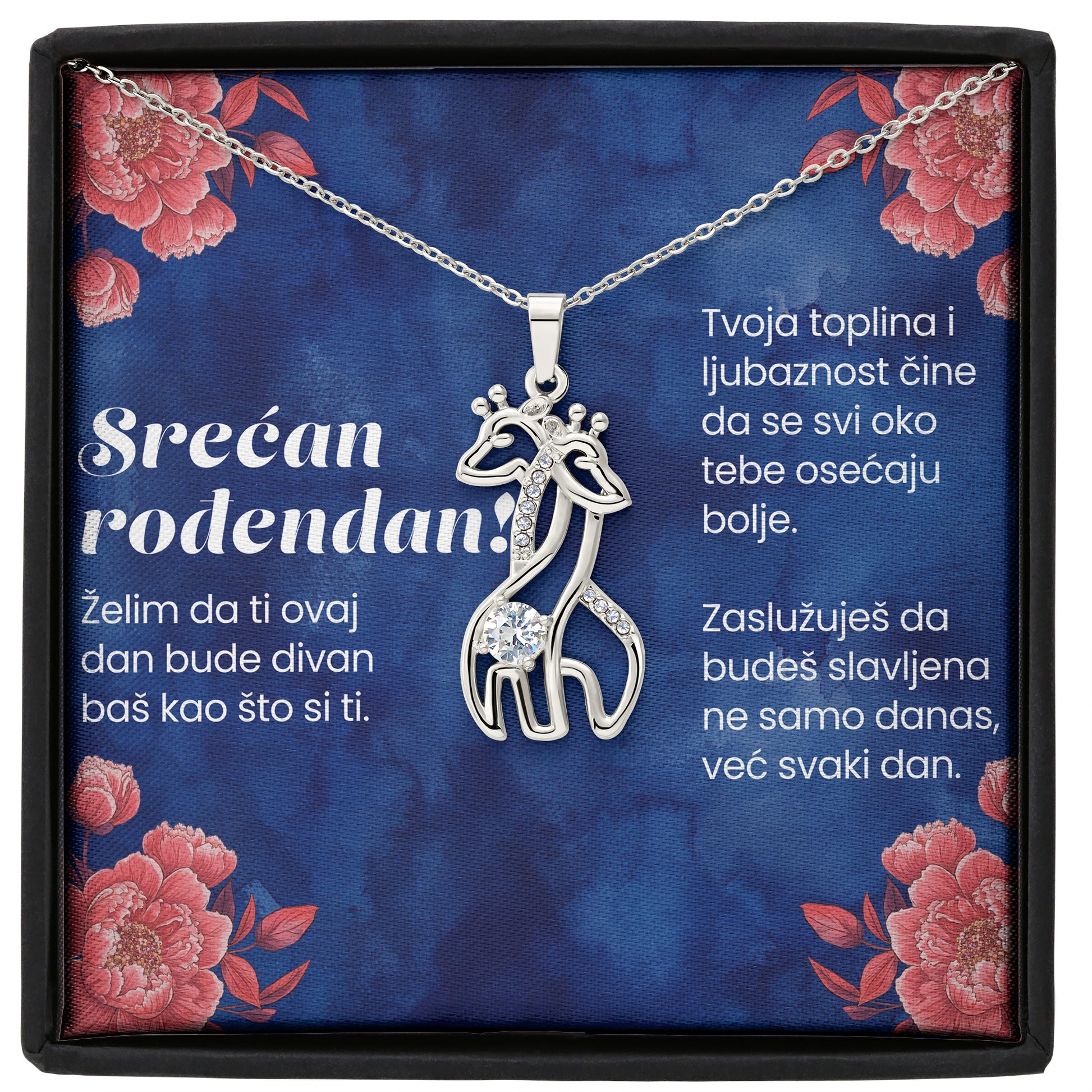 Srećan rođendan! - Posveta sa lančićem za rođendan (Žirafa), cvetna