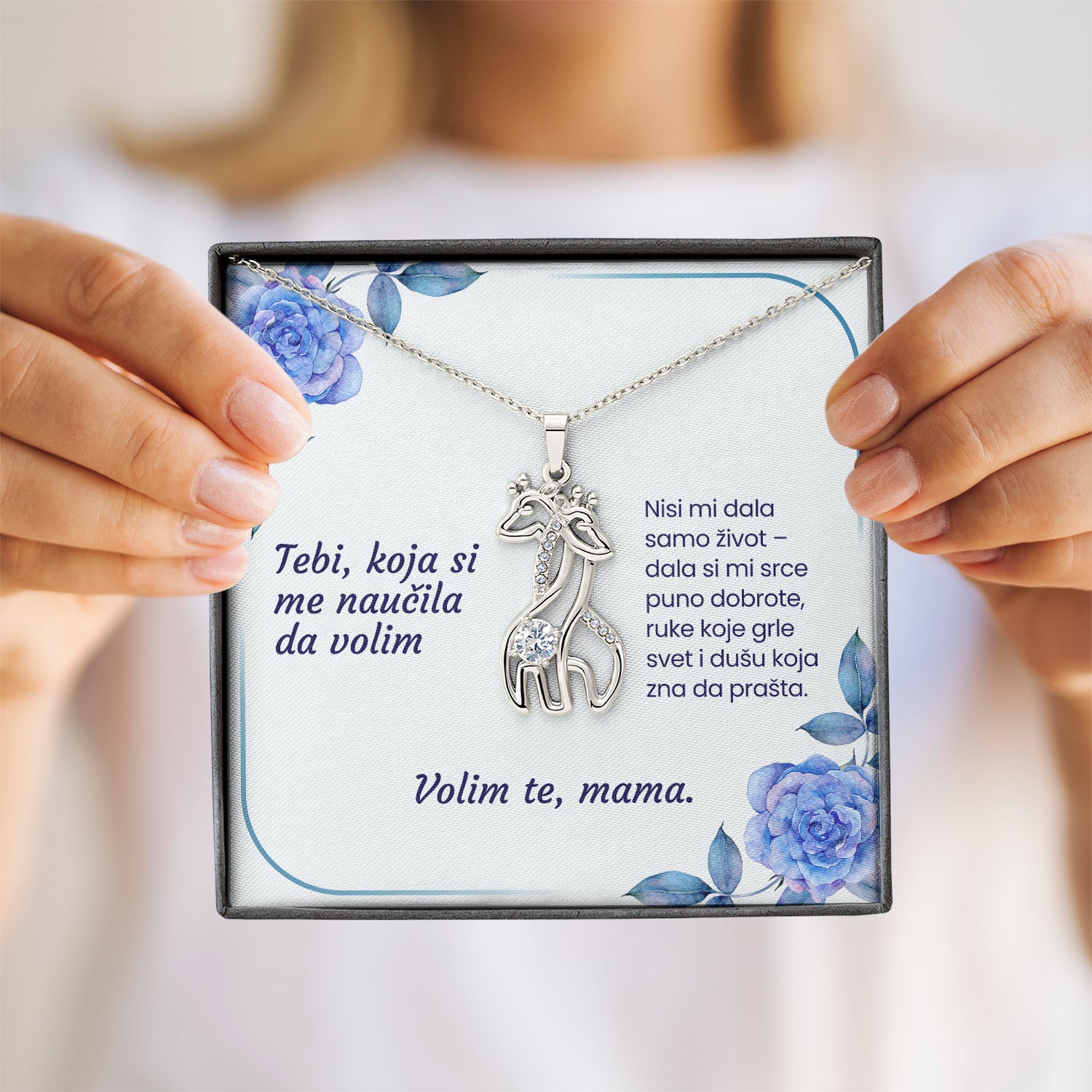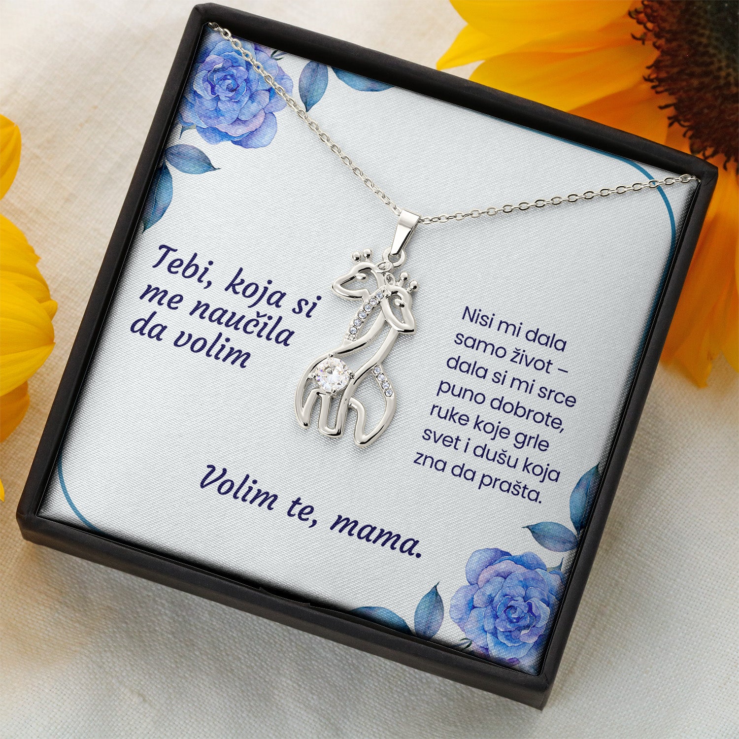 Tebi, koja si me naučila da volim – Posveta sa lančićem za majku (Žirafa)