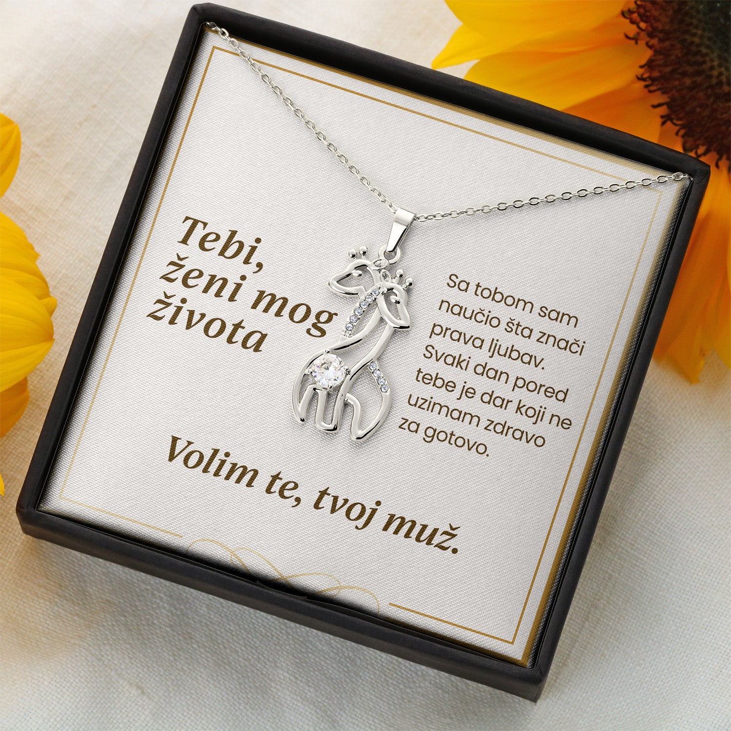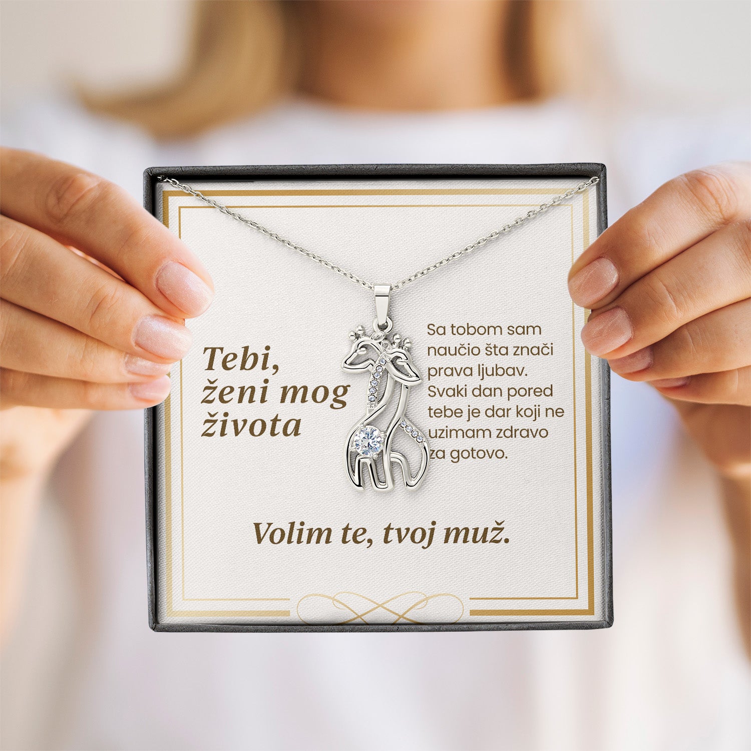 Tebi, ženi mog života – Posveta sa lančićem za suprugu od muža (Žirafa)