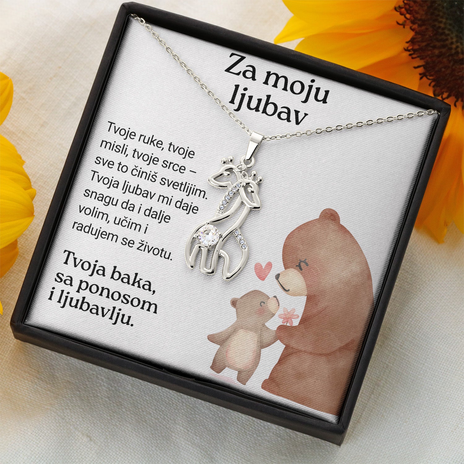 Za moju ljubav – Posveta sa lančićem za unuku od bake (Žirafa)