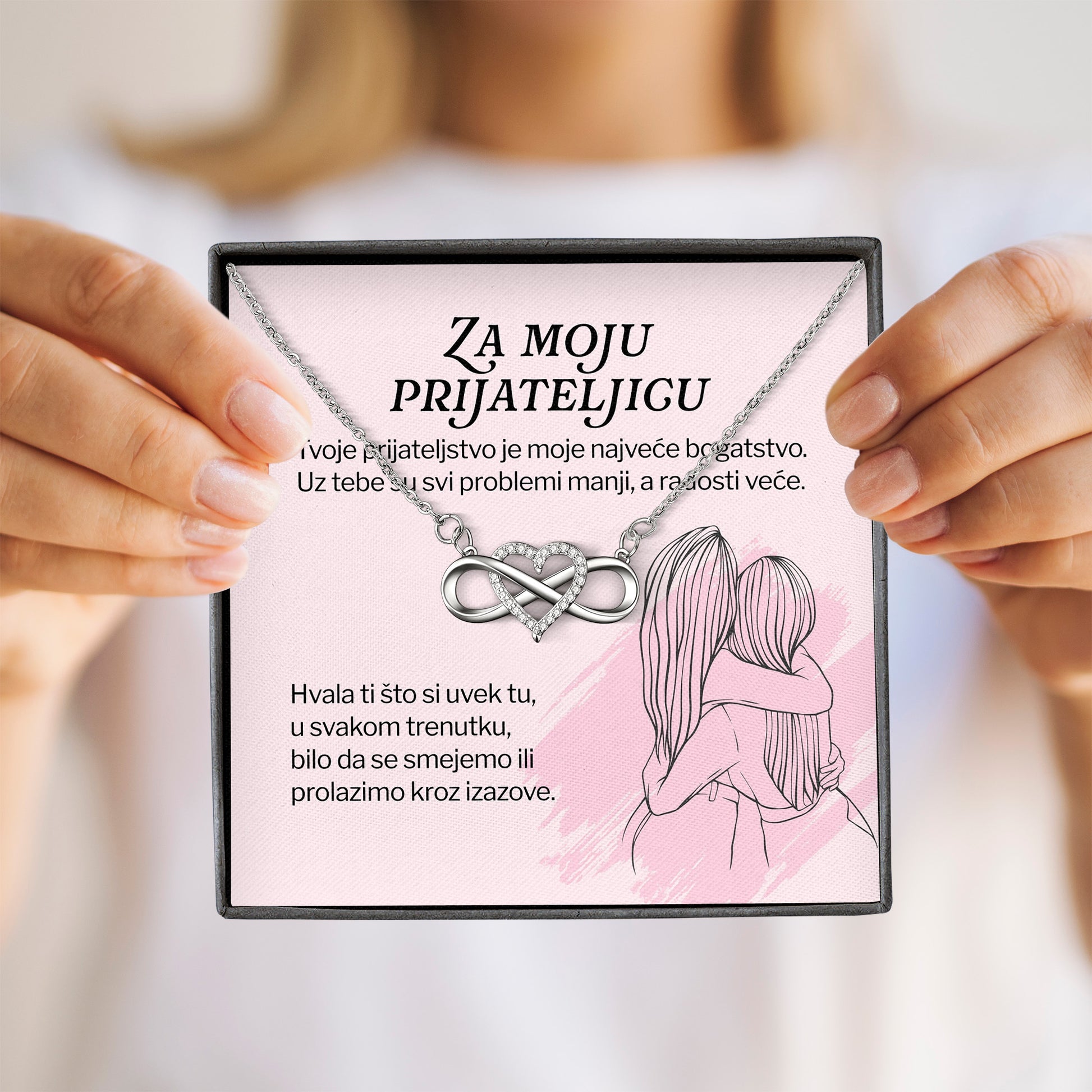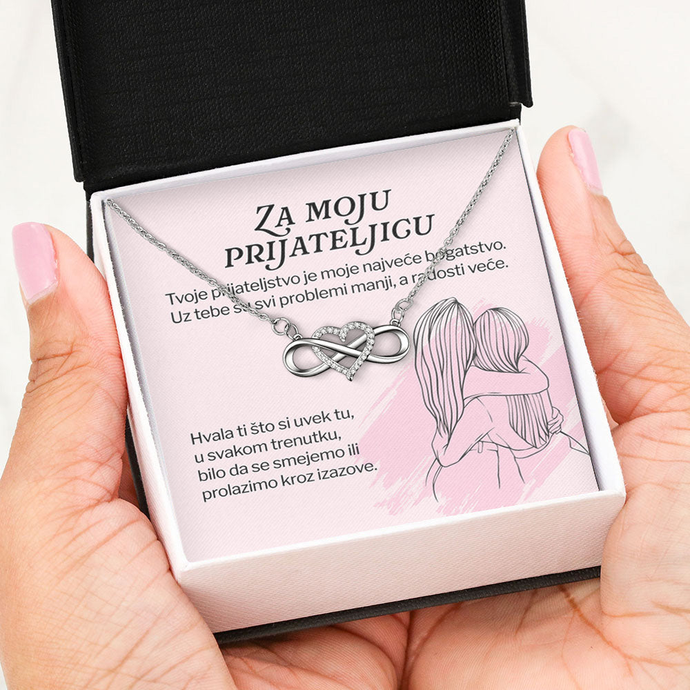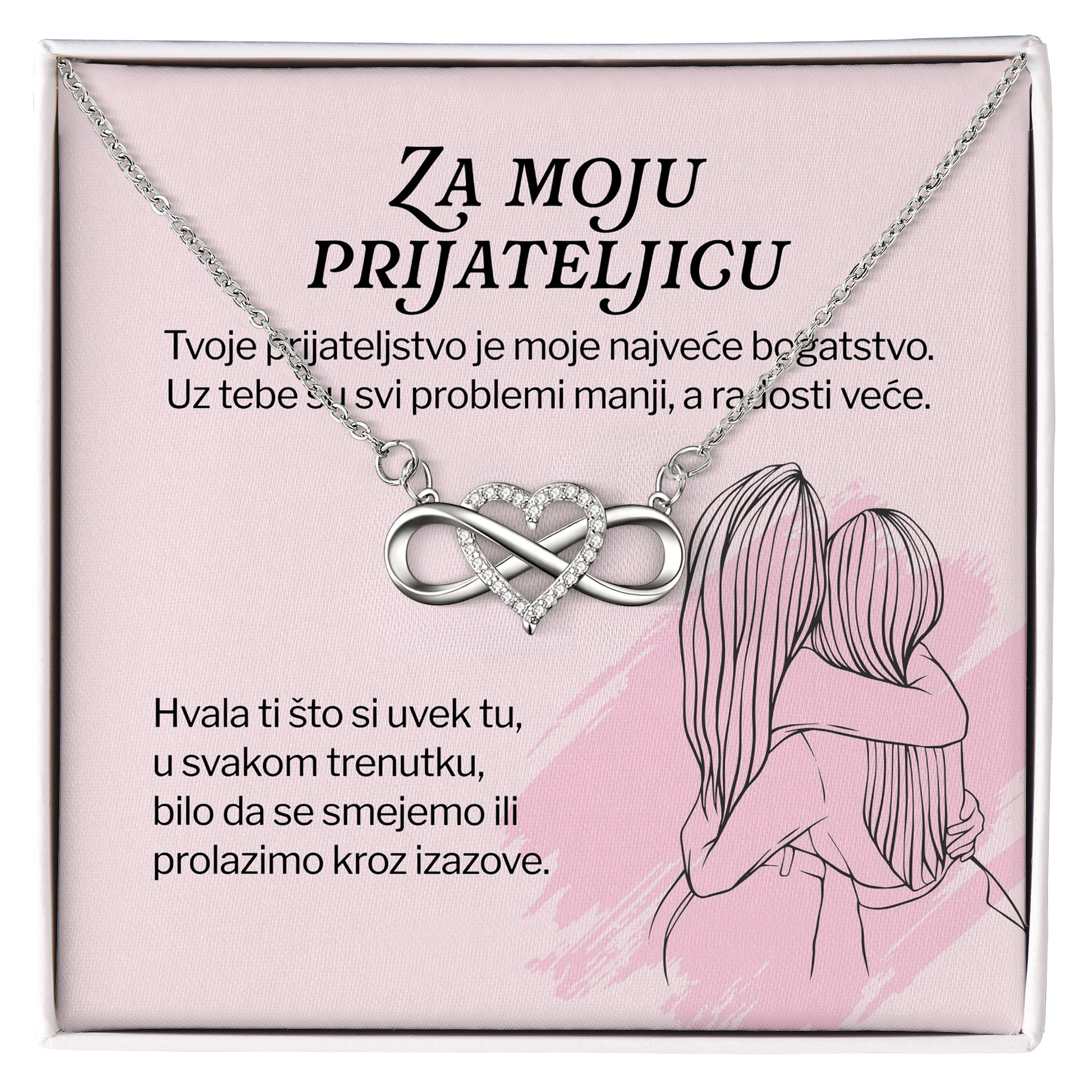 Oduševite svoju prijateljicu jedinstvenim poklonom koji nosi trajnu poruku ljubavi – ogrlica od visokokvalitetnog nerđajućeg čelika.
