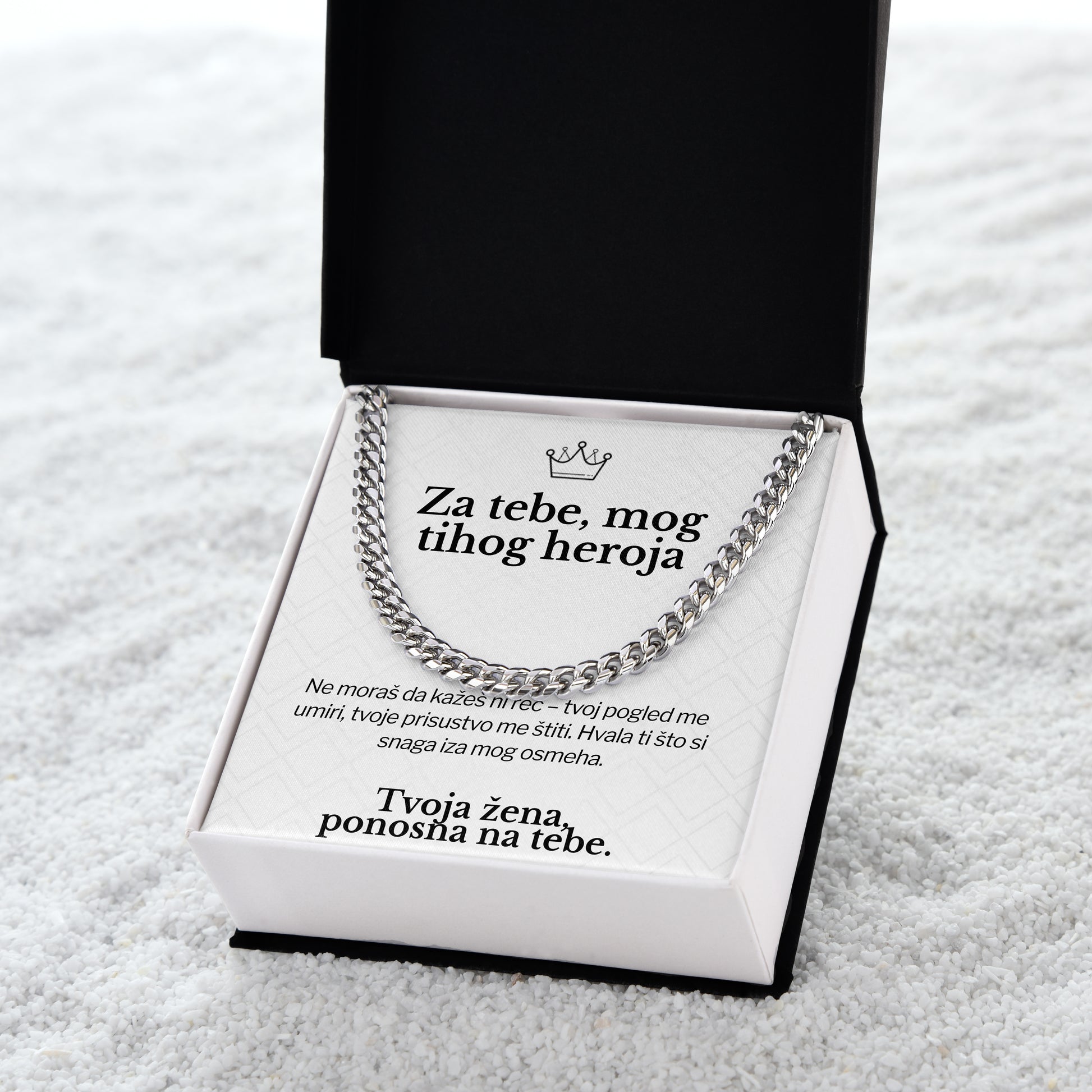 Za tebe, mog tihog heroja – Posveta sa lančićem za muža od žene