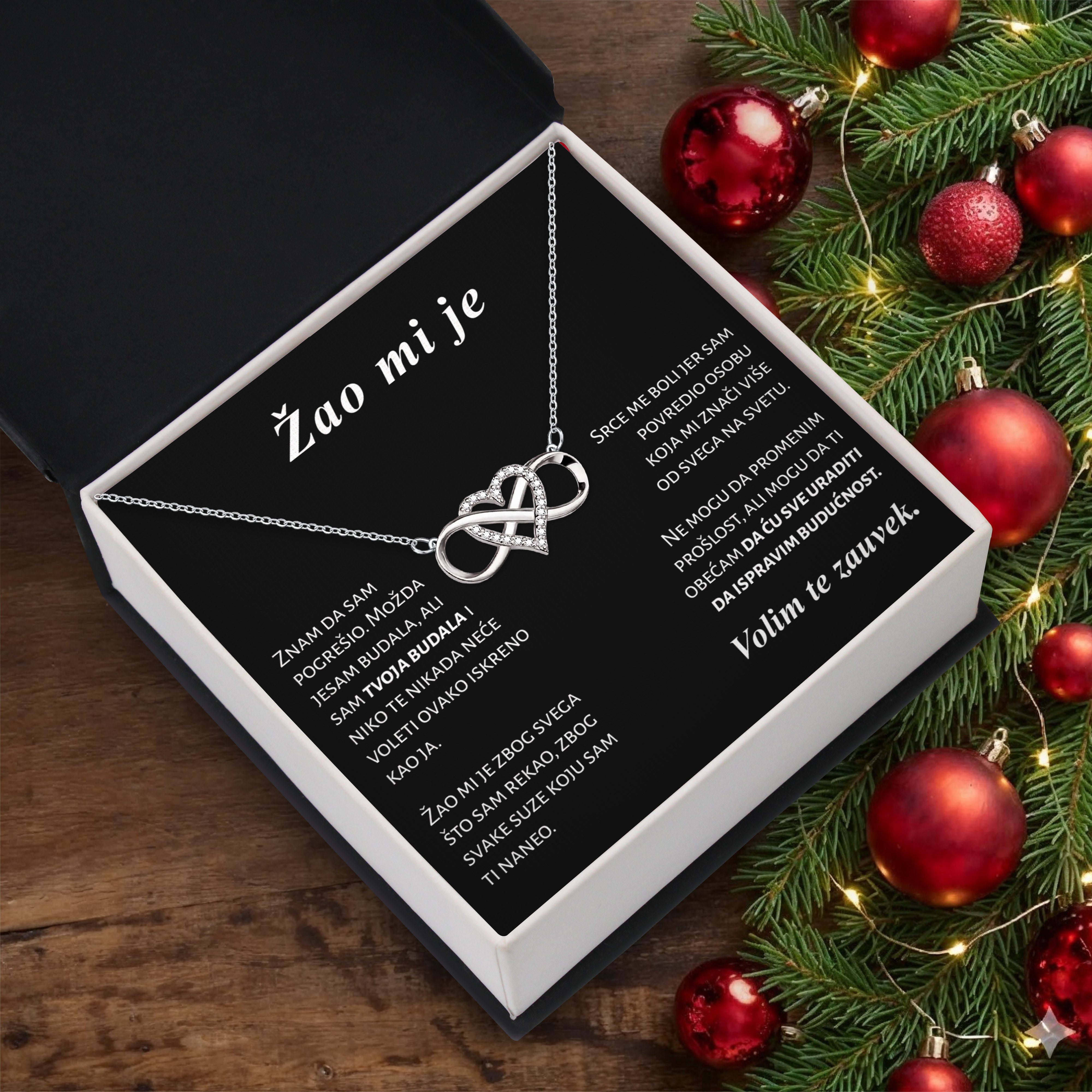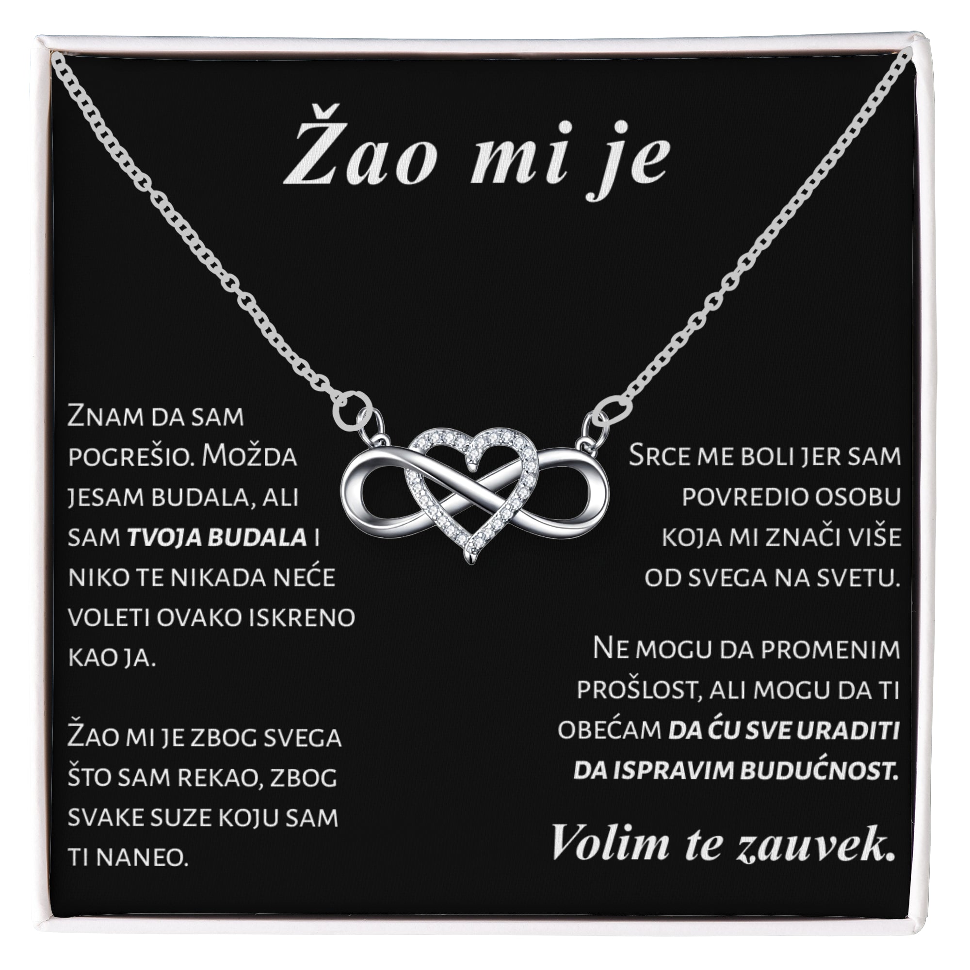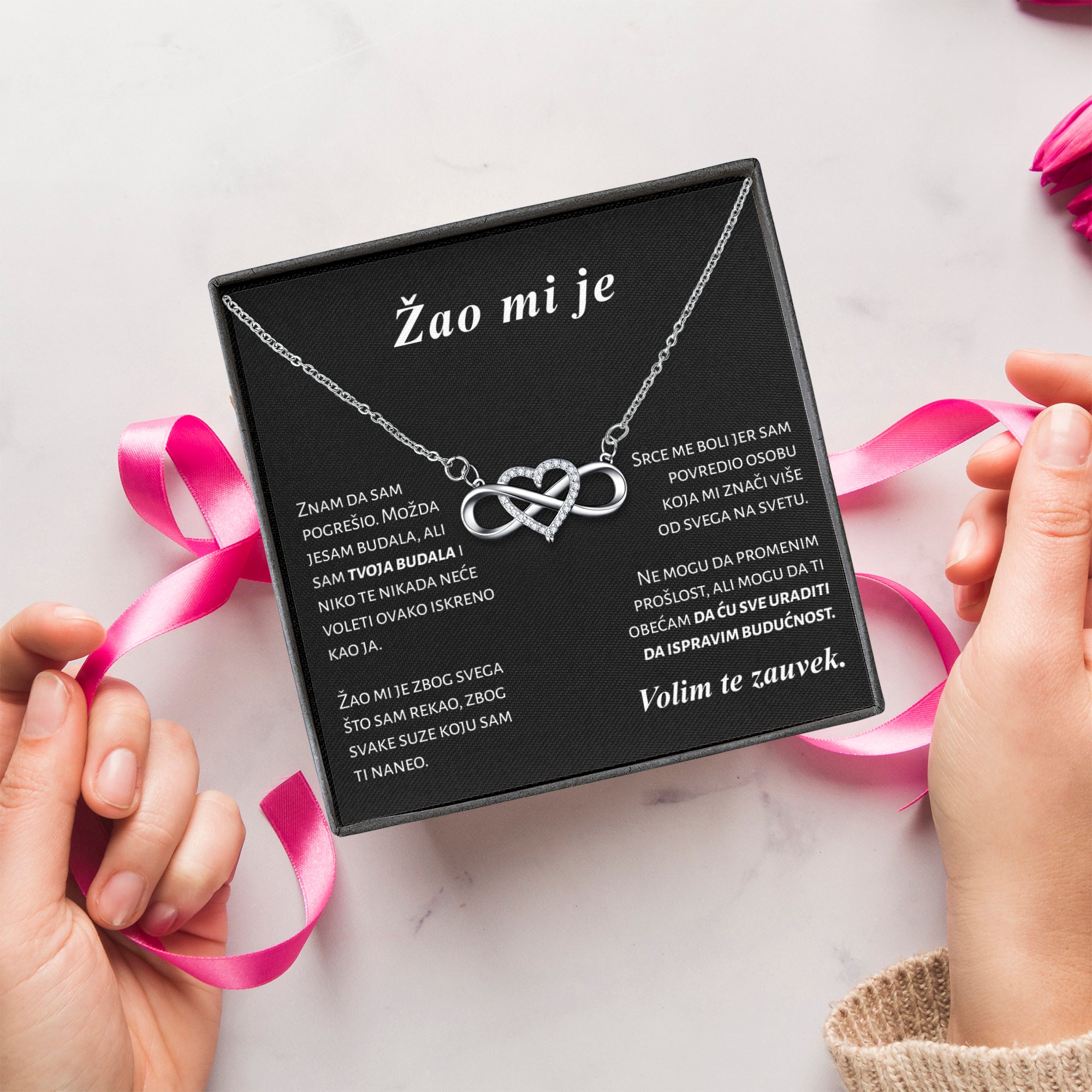 Predivna ogrlica "Infiniti srce" kombinuje simbol beskonačnosti sa oblikom srca, predstavljajući neprekidnu ljubav i povezanost. Ukrašena cirkonskim kristalima i izrađena od visokokvalitetnog nerđajućeg čelika, ovaj komad nakita je savršen za svaku priliku. Ogrlica dolazi u luksuznoj kutiji, uz posebnu posvetu koja dodaje još veću emotivnu vrednost ovom poklonu.